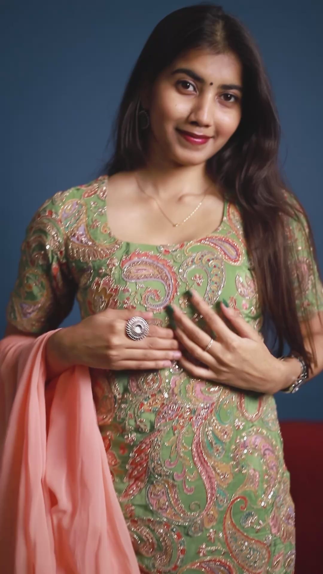 Introduce modern elegance to your wardrobe with our Pista Peach Peplum Sharara Set. The stylish short peplum top is crafted from flowing Georgette in a deep, muted Pista Green shade. The top features an all-over, self-colored paisley print, offering a subtle yet rich texture.